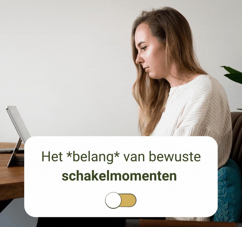 ➡ Maak er een bewust schakel moment van. Sluit de ene situatie af en geef jezelf de ruimte om te wennen aan de nieuwe situatie.